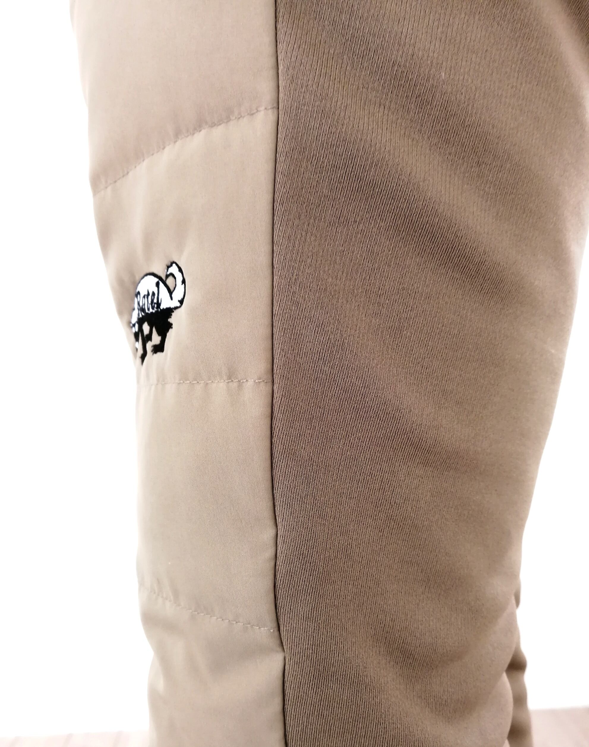 ポリエステルタフタのツるりとした表面の中にダウン80% フェザー20%が内蔵された、保温・防風性に優れたパンツです。