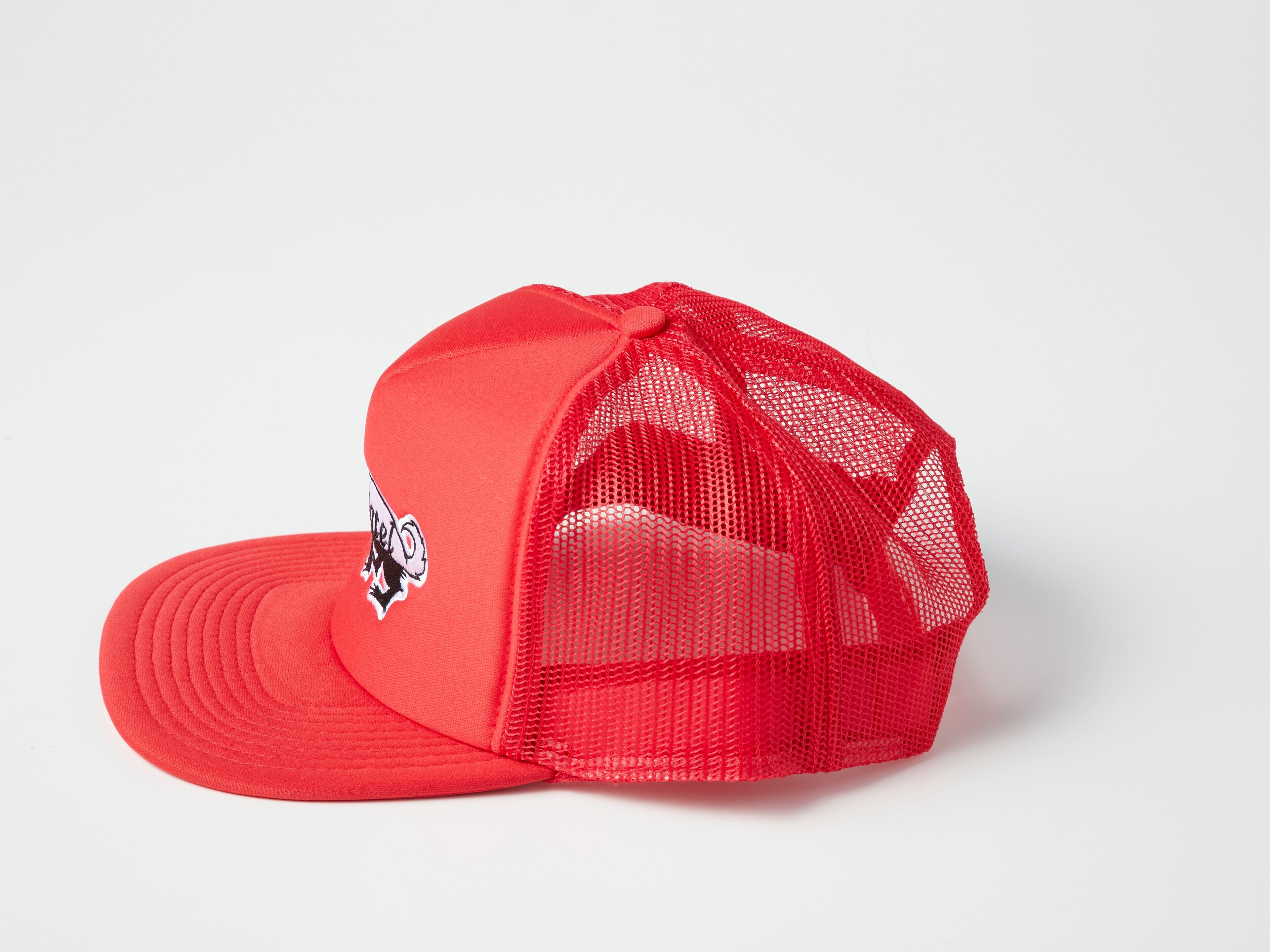 ライトグレーのコットンパネルにRATELのモノクロ刺繍ロゴ、ダークグレーのメッシュバック。
